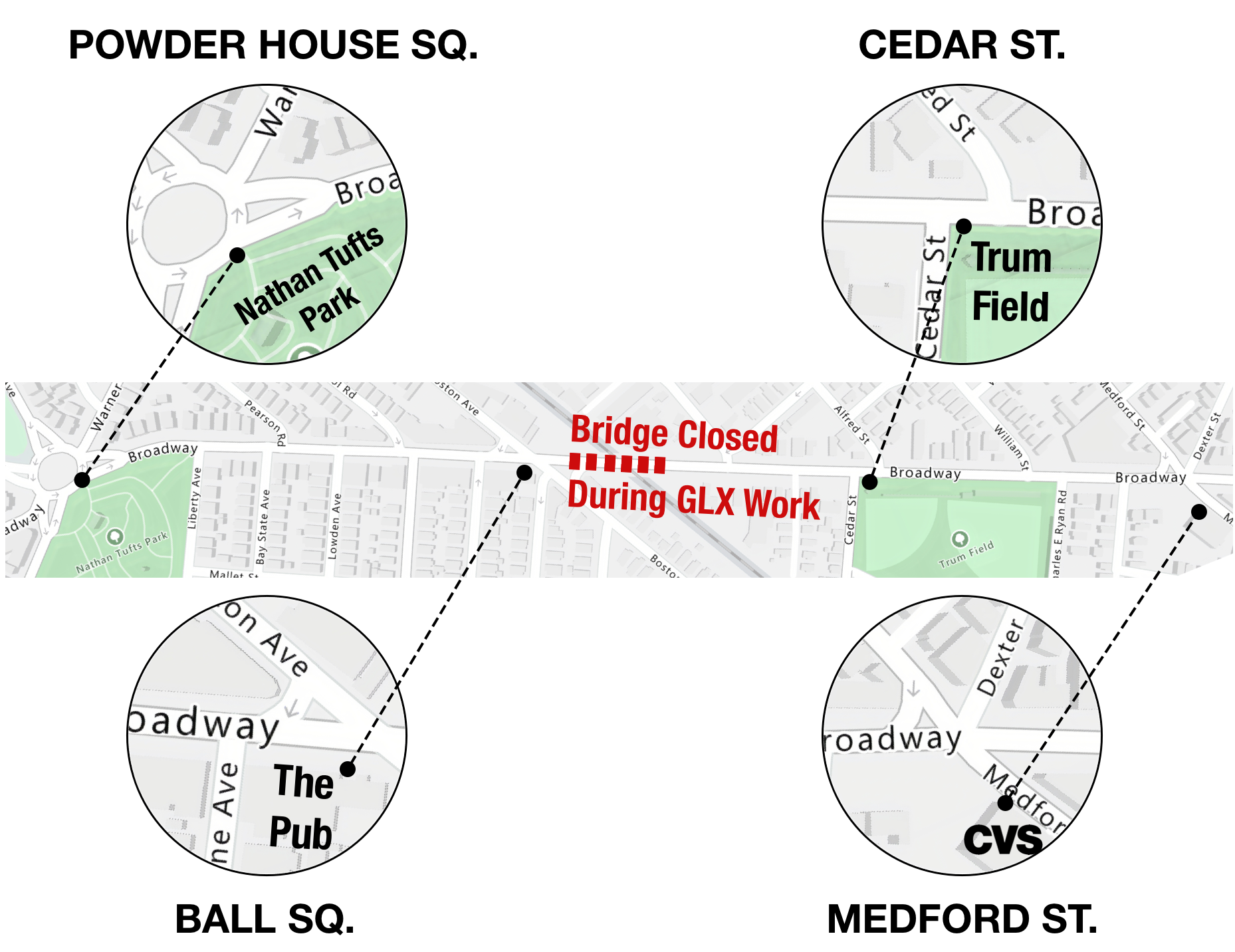The Somerville Bridge Hopper is a free shuttle service provided by the City to help residents navigate long-term bridge closures required for Green Line Extension construction.